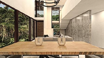 - Sala de televisión con una vista a la doble altura del comedor